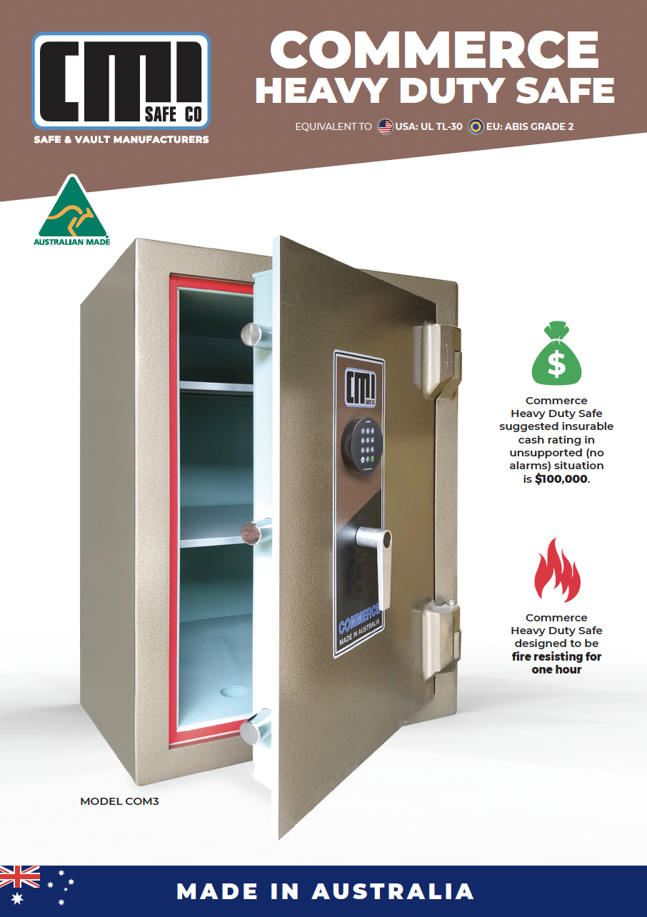 CMI Commerce heavy duty safes are ideal for small to large business requirements offering a great level of security, these are available in the following ranges, COMA, COMB, COM1 - COM10