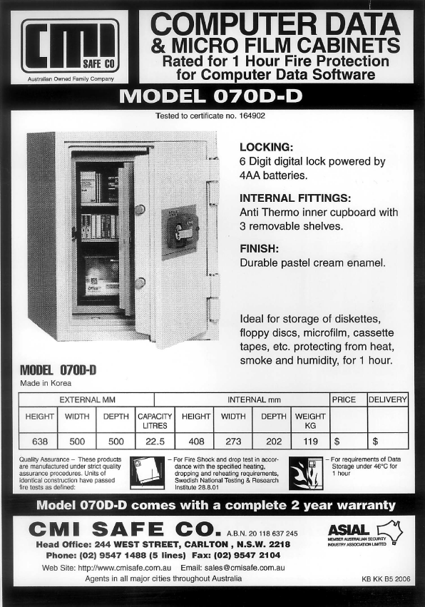 • CMI Record safes offer both fire and theft protection for your business & personal records