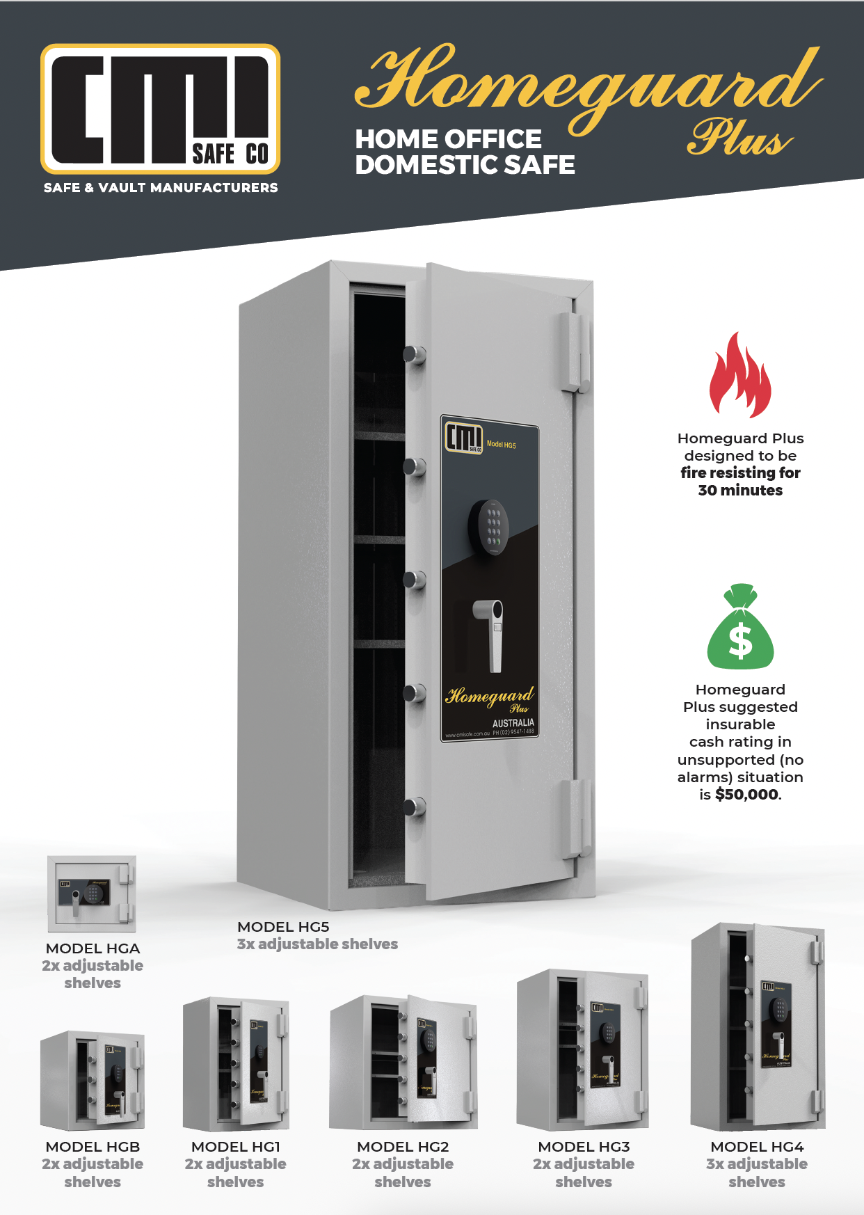 - Homesafes designed and manufactured in 2 models, HS2 & HS4. These safes are ideal for security in the home when properly secured to the floor and/or wall.